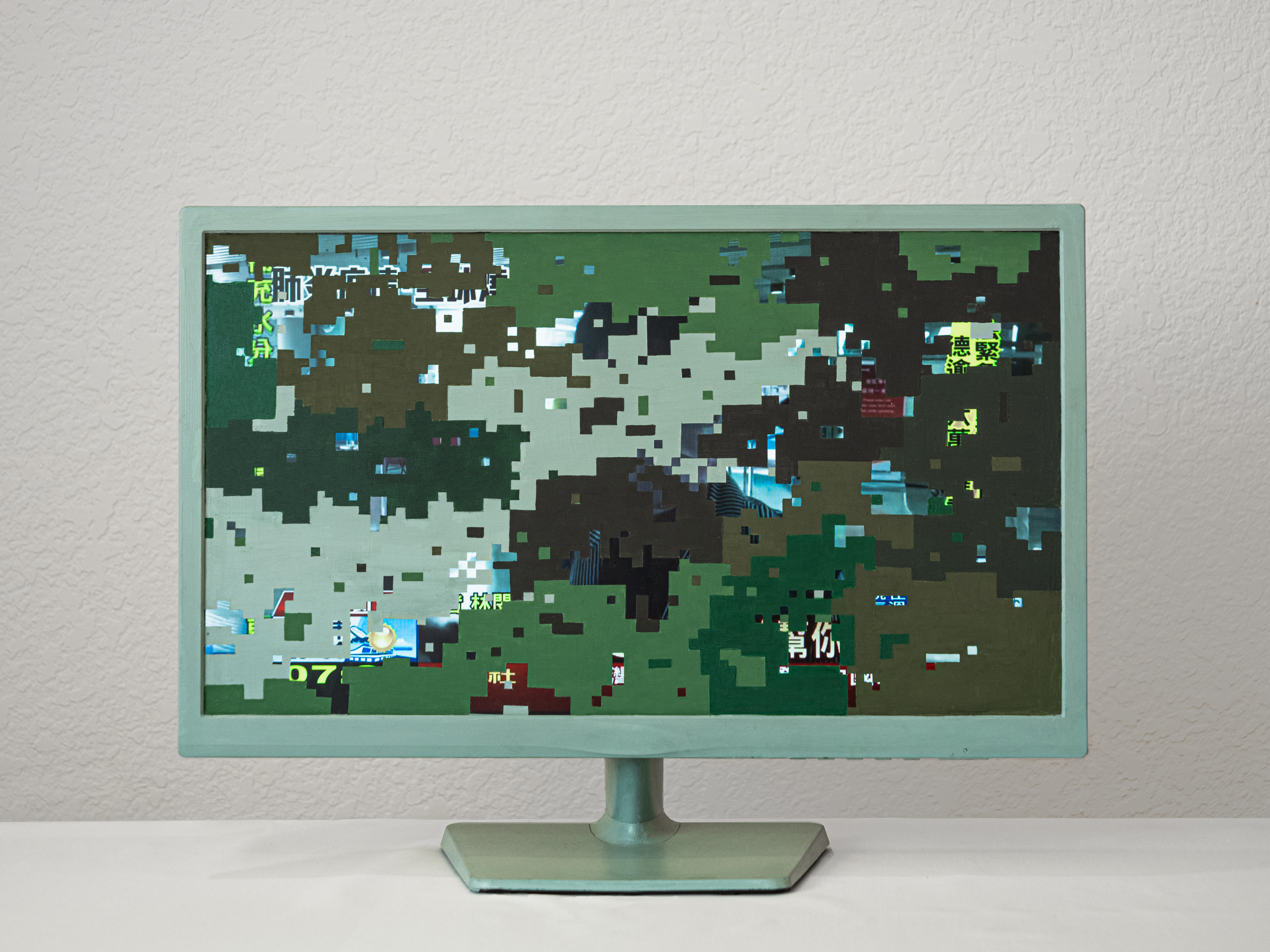 Acrylic, monitor, live news feed | 54.6 x 39.3 x 20.3 cm (21.5 x 15.5 x 8 in)
